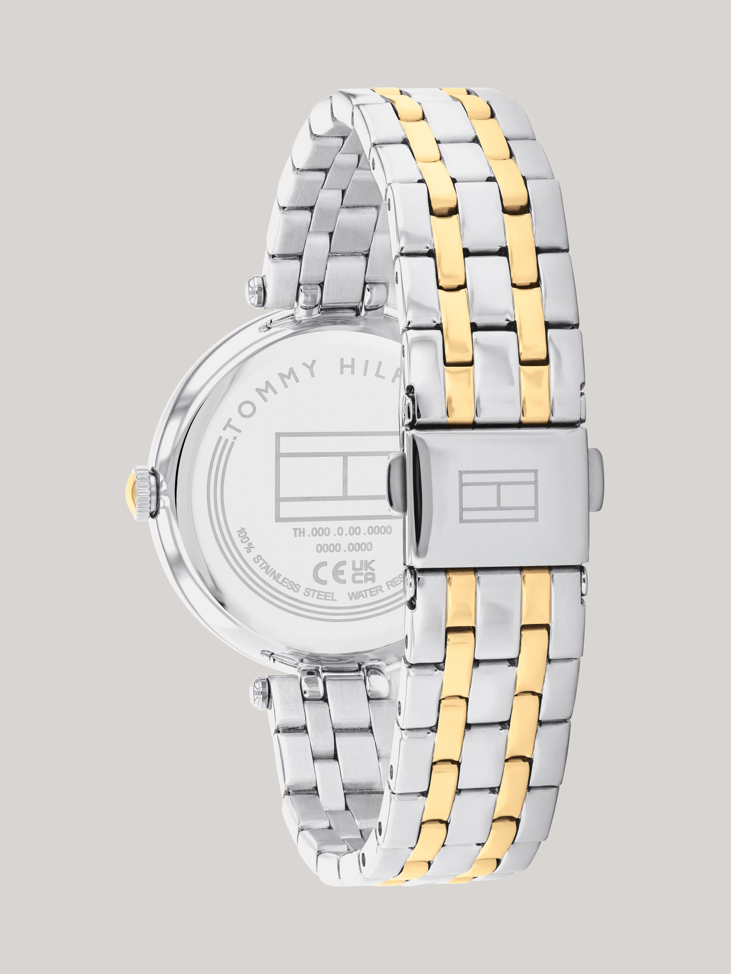 ساعة بقرص مزخرف وسوار مزدوج اللون بحجم   MD   إضافة إلى حقيبتك.
