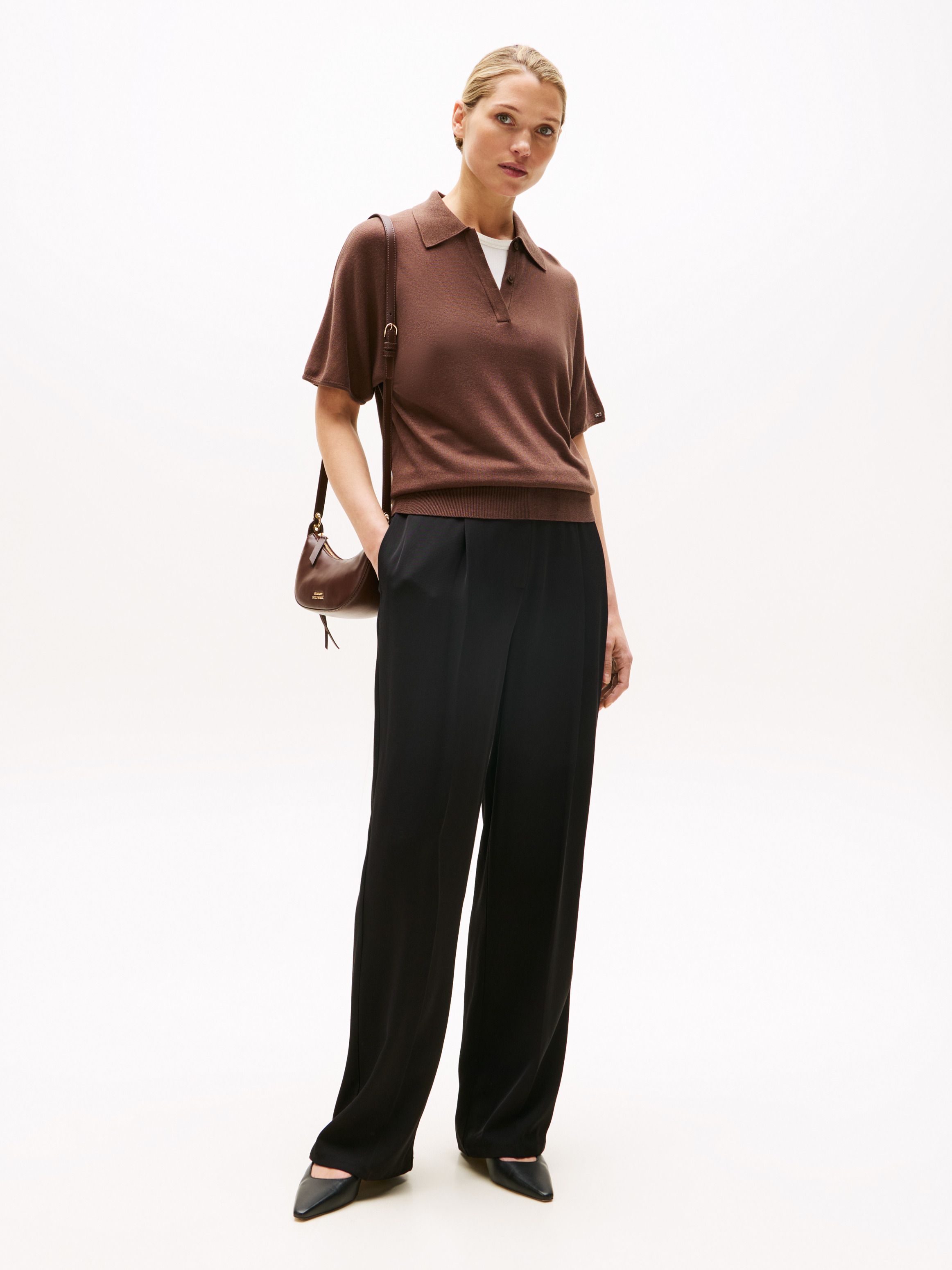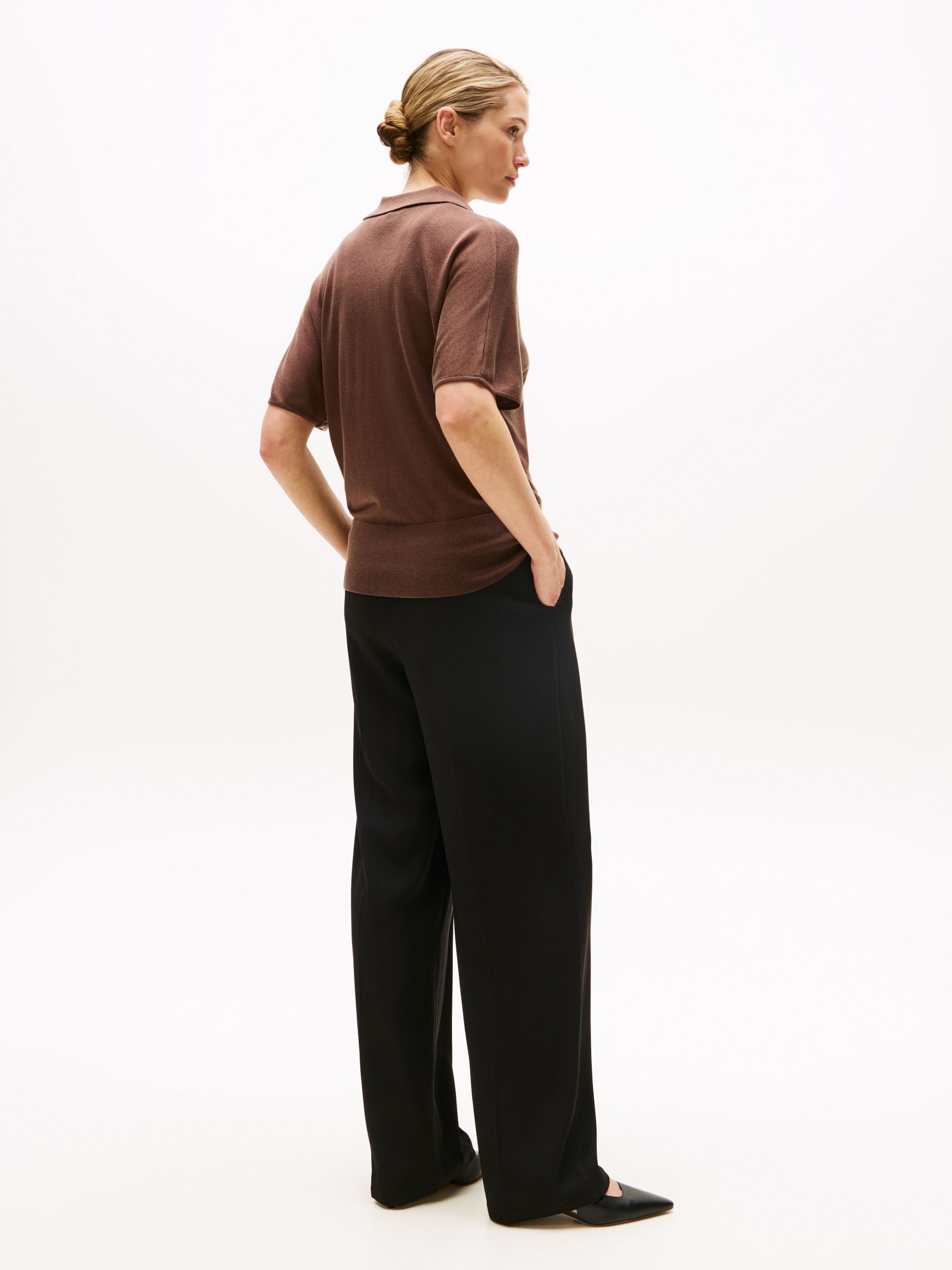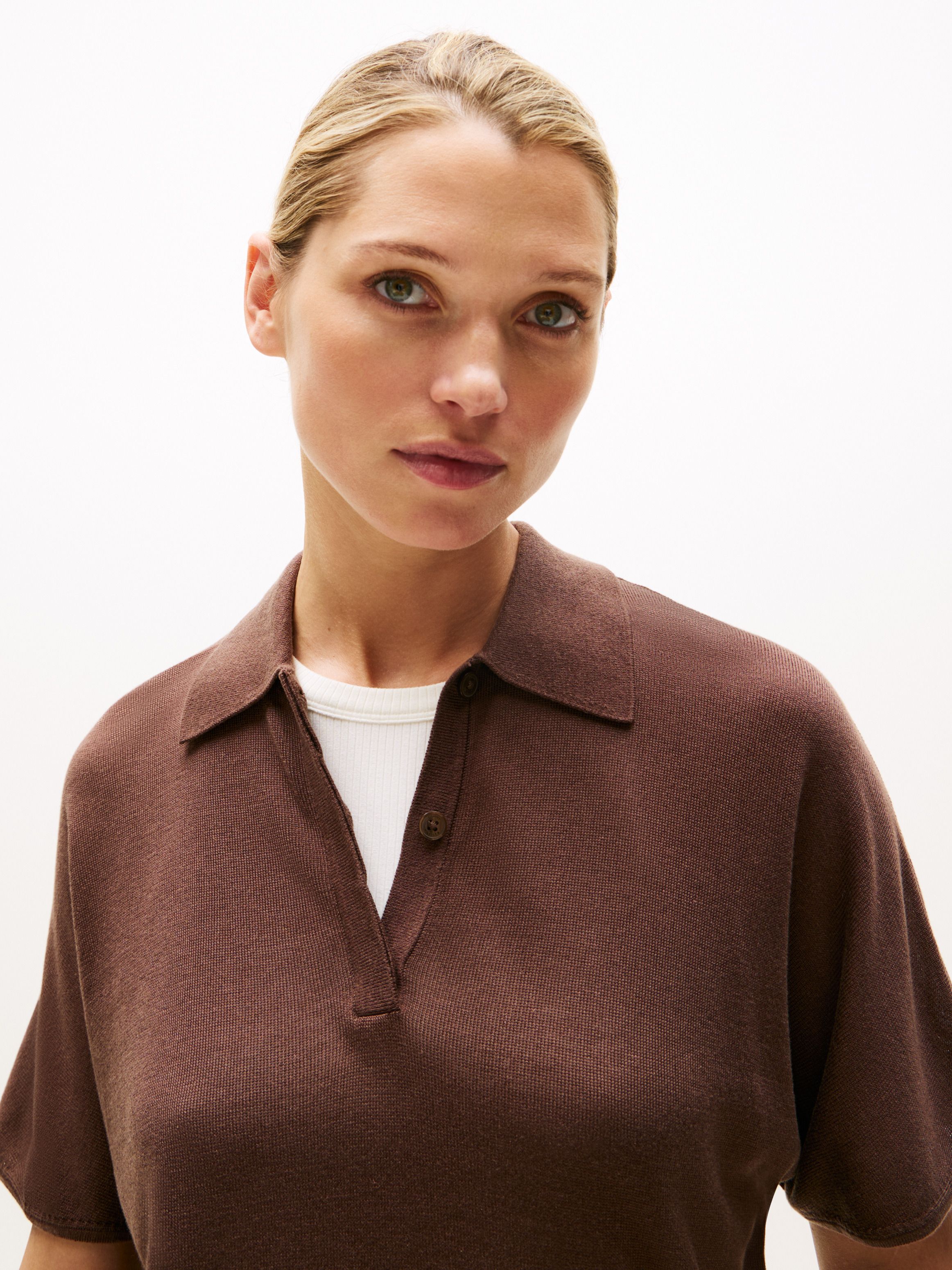 يُضفي هذا البلوفر البولو بأكمامه القصيرة ولمسة الحرير في النسيج لمسة فاخرة على إطلالتك من النهار حتى المساء، ويزدان بعلم معدني يحمل توقيع العلامة.
