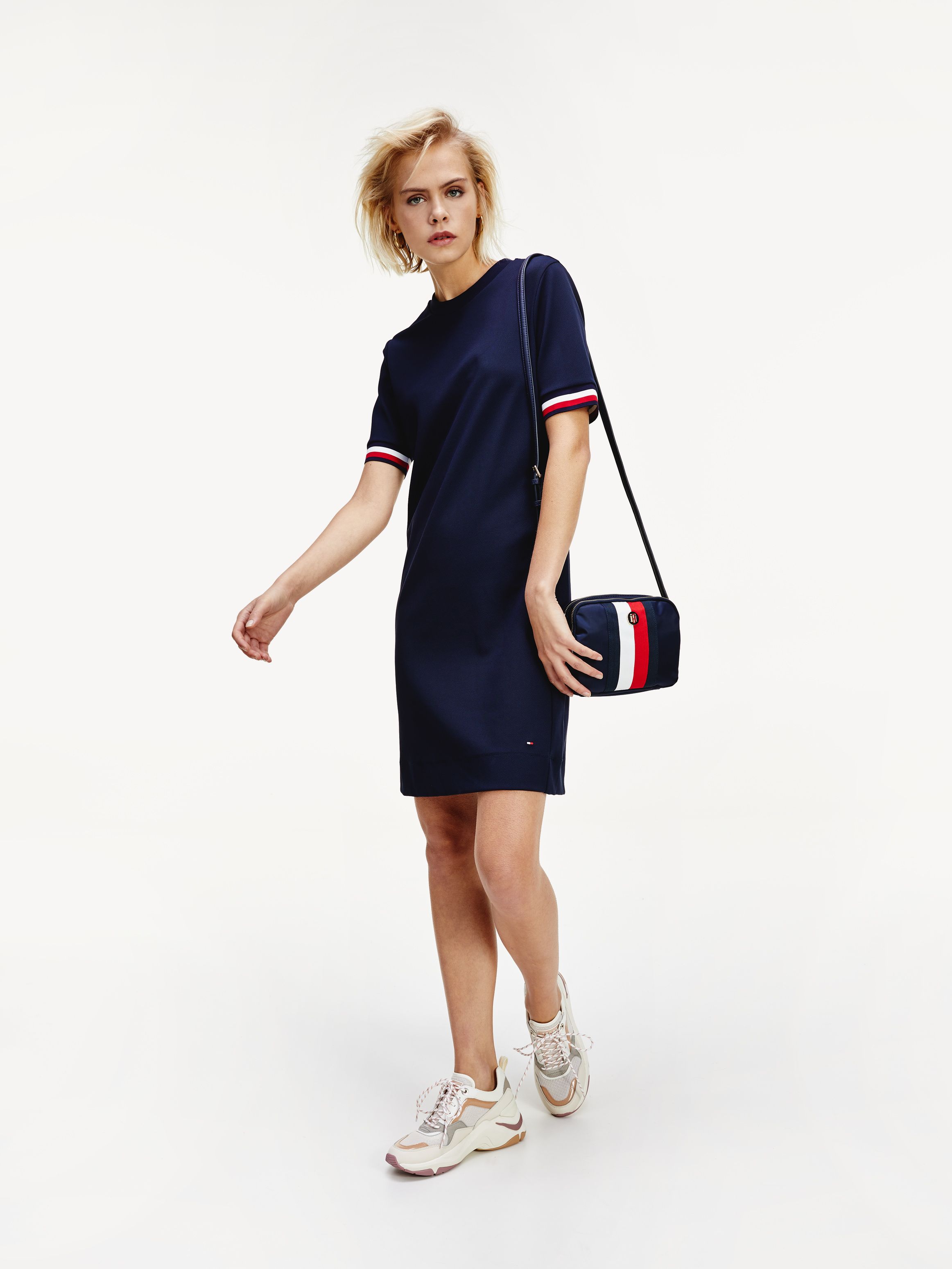 احصل على عطلة نهاية الأسبوع مليئة بالاسترخاء عند ارتدائك لهذا الفستان المصمم على شكل تيشيرت، والمزيّن بشريط شعار تومي هيلفيغر عند الكف.