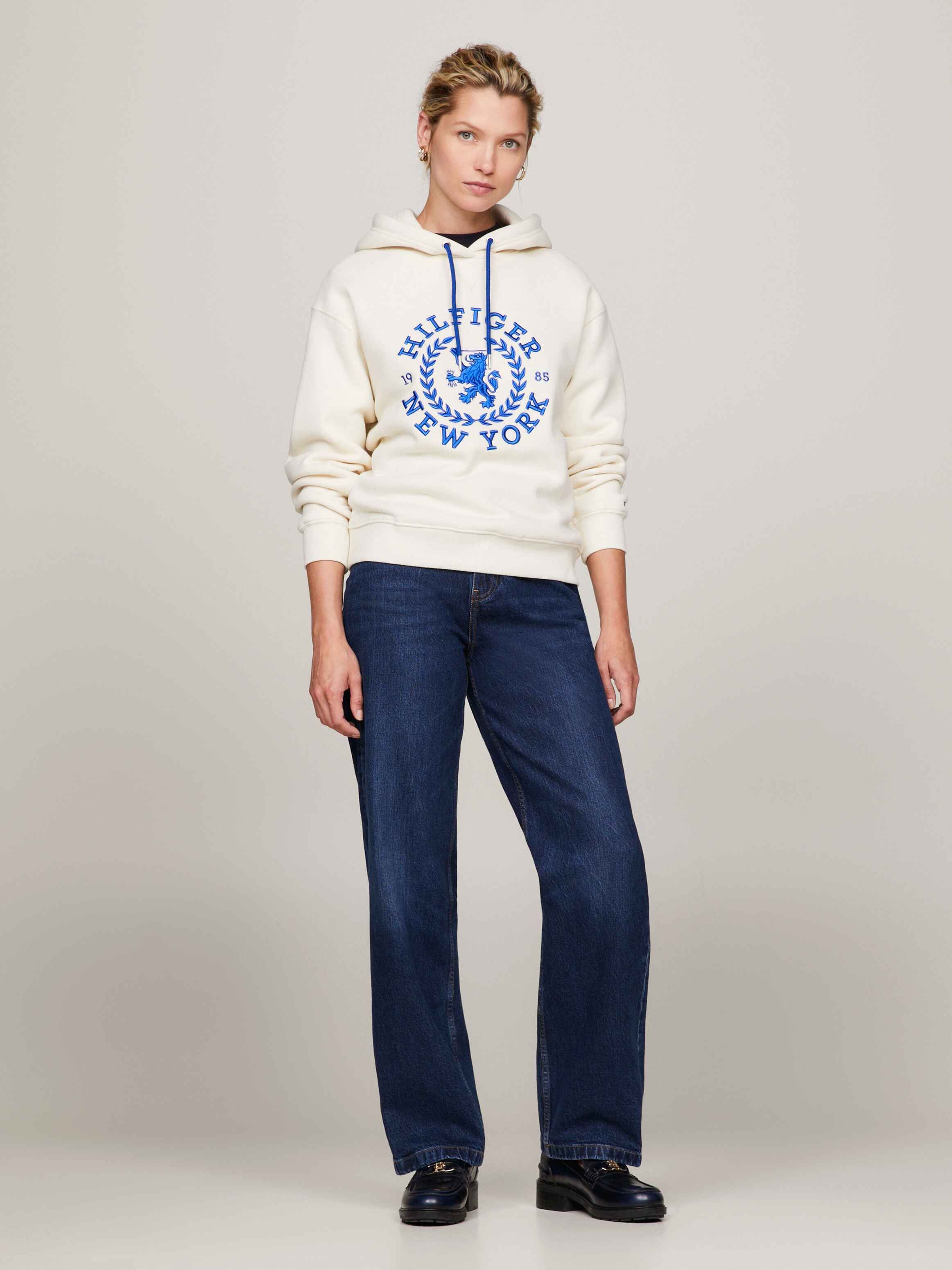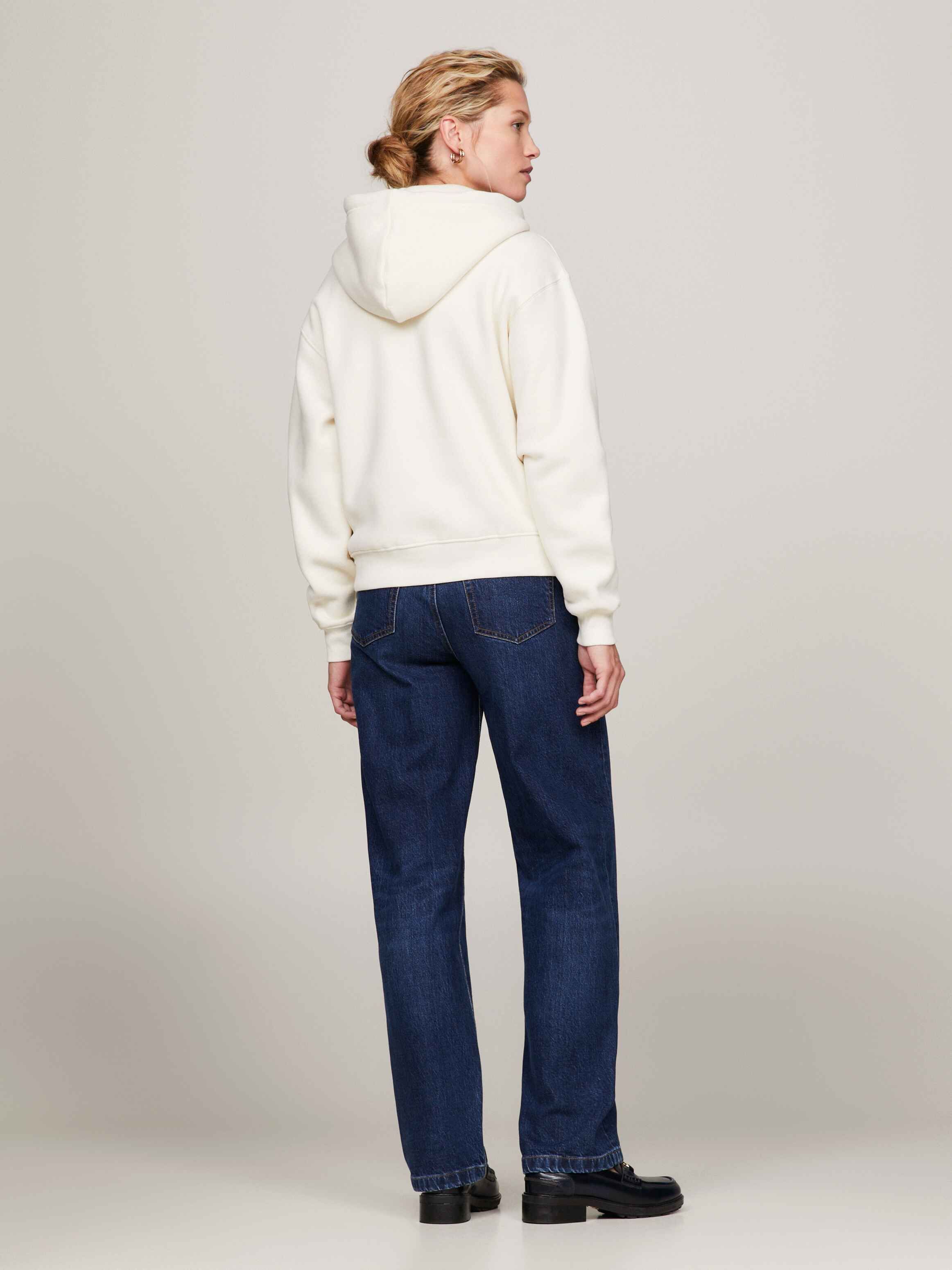يضيف شعار تومي هيلفيغر الكبير على الصدر لمسة أنيقة إلى هذا الهودي، المصنوع من مزيج القطن المعاد تدويره.
