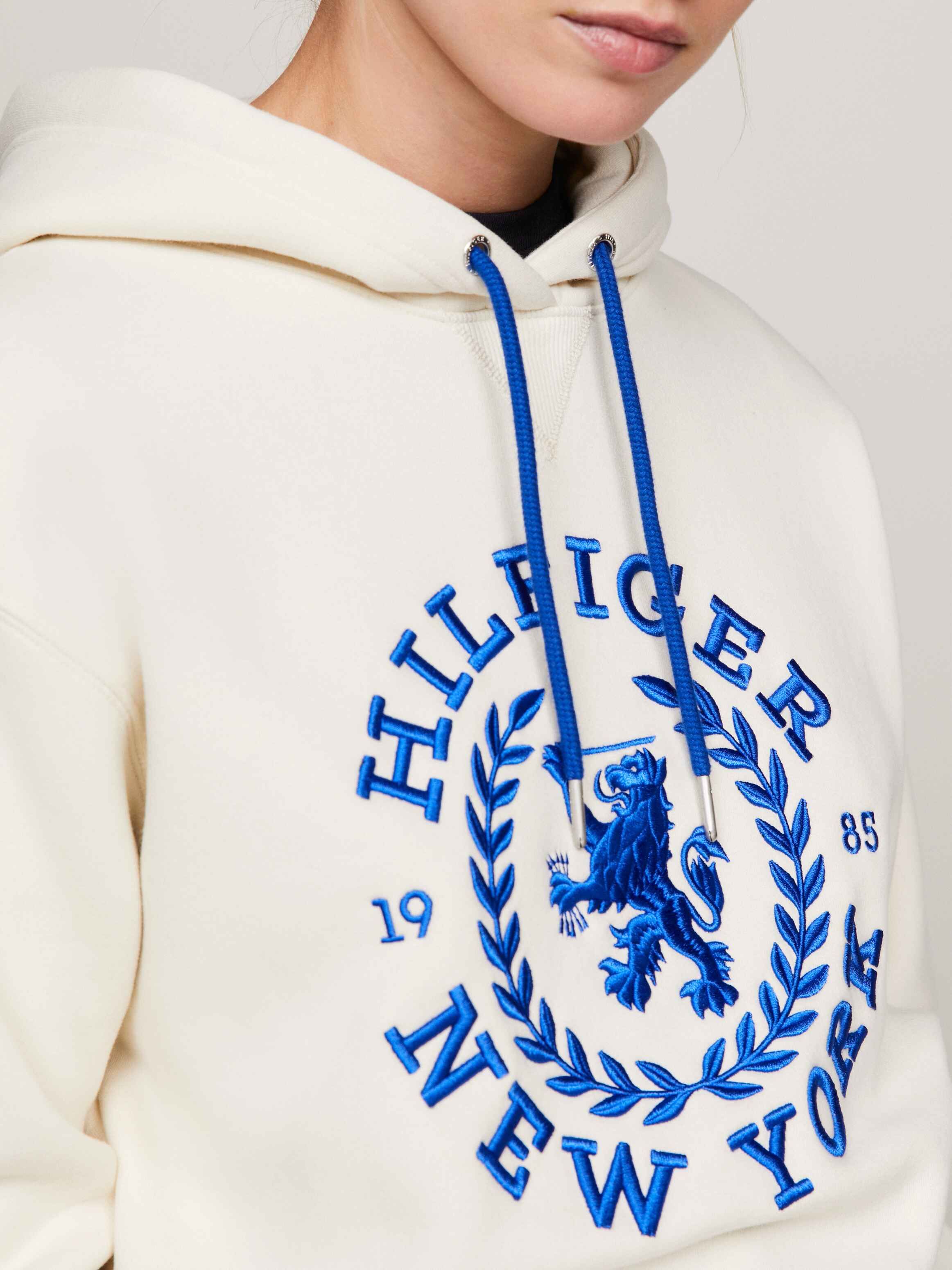 • مزيج من القطن المعاد تدويره • ياقة بغطاء رأس برباط • أساور وحافة مفصلة • شعار تومي هيلفيغر واسع على الصدر • علامة تومي هيلفيغر التجارية • تطريز علم تومي هيلفيغر على الكم