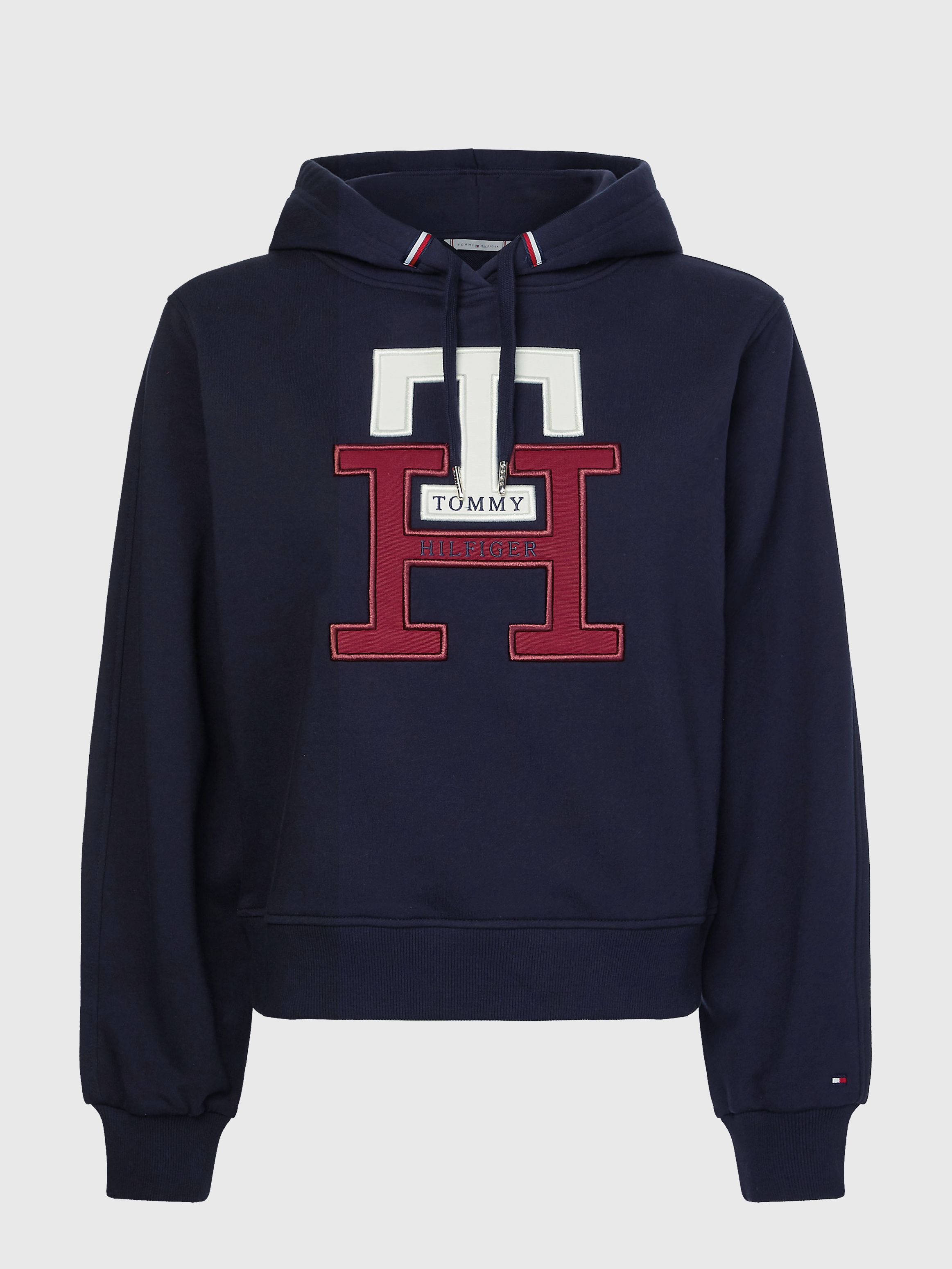 • قطن تيري عضوي خالص • ياقة بغطاء رأس • أساور وحافة مفصلة • شريط التوقيع على غطاء الرأس • تطريز حروف الشعار على الصدر • علامة تومي هيلفيغر التجارية • تطريز علم تومي هيلفيغر عند الكفة