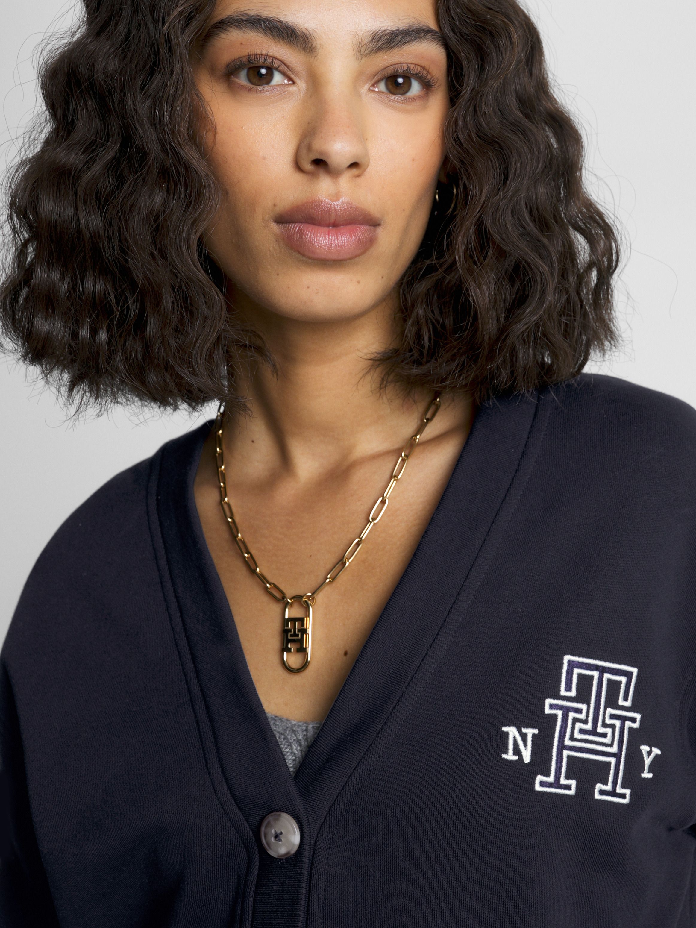 • قطن تيري نقي • ياقة على شكل V • أزرار بنقشة صدفة السلحفاة • أساور منسوجة • طبعة خطوط بألوان متناسقة على الأساور • شعار تومي هيلفيغر على الصدر • علامة تومي هيلفيغر التجارية • شعار تومي هيلفيغر مطرز على الأساور